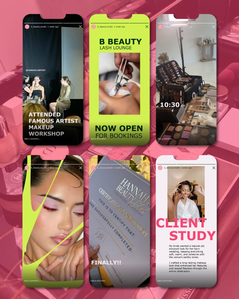 By refining her logo, colour palette, typography, and overall brand feel, the updated identity brings clarity and confidence to her business. Supporting her expansion into new services while staying true to her original vision. The transformation of B Beauty Studio already speaks for itself.