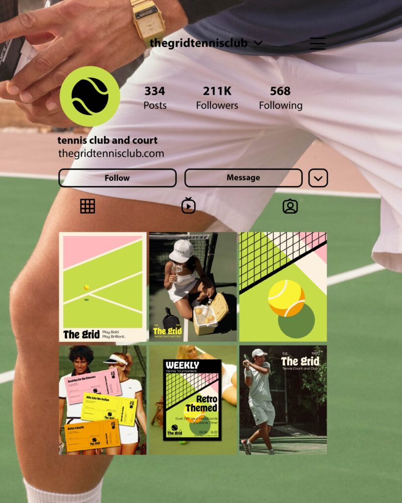With a statement logo, confident colour palette, and refined yet fun visual language, The Grid positions itself as a tennis club that doesn’t just host matches, it creates experiences.